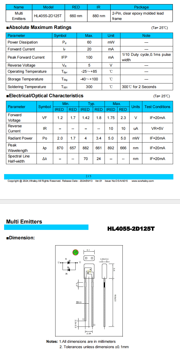 2极血氧传感器芯片HL4055-2D125T在线咨询产品详情■Features●Lead frame molded packages●Two leads designs● Bi-wavelengths or triple wavelengths LEDs●Matching detector response■Applications●SPO2●Blood analysis●Medical instrumentation●Radiometric instruments download: DS-NA015_HL4055-2D125T